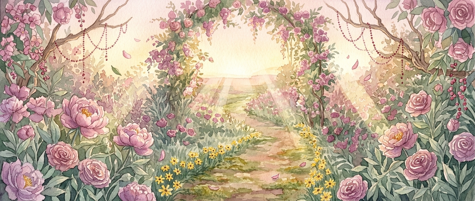 Je l’ai peinte sur papier coton 300g, et cette texture granuleuse a donné aux aplats de rose poudré et de prune quelque chose de vivant, presque de velouté. C’est une œuvre qui m’a demandé de la lenteur et de la tendresse — chaque petite fleur posée une à une, chaque perle ponctuée au fin pinceau. Elle me ressemble dans ce qu’elle dit : que la magie, ce n’est pas forcément quelque chose de sombre ou d’intimidant. Parfois, elle a des cheveux roses et elle sent les fleurs de cerisier.